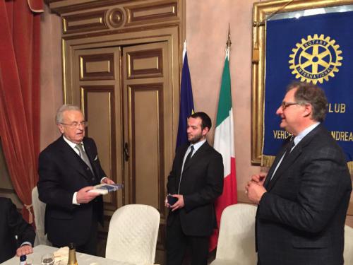 1 luglio 2015 - Conferimento dell’Onorificenza rotariana "Paul Harris Fellow" al socio Dott. Stefano Mazza, cardiologo e promotore del progetto che, nel corso di tre anni scolastici, con il contributo della Rotary Foundation e la partecipazione dei Rotary di Gattinara, Santhià-Crescentino e Vercelli, ha dotato di defibrillatori tutti gli istituti medi superiori del territorio di competenza, addestrando all’uso di tali attrezzature numerosi allievi, docenti e operatori scolastici